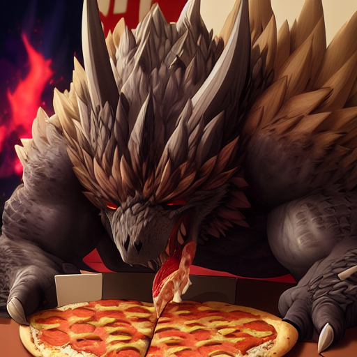 うどんを食いながらこっち見るネルギガンテ。でもこのカラーリングはナルガじゃ?・・学習データにはありませんでした。知名度の差が。 #StableDiffusion