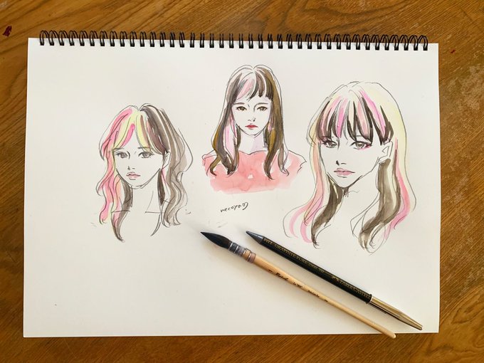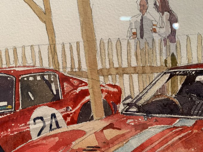鉛筆のスケッチにほぼワンストロークで描かれた水彩。紙の色を残した白や光の表現に、紙と筆の荒さを生かしたタッチやぼかしの表現・・軽やかなのに重厚ですごいです😌生で近くで原画見る贅沢…