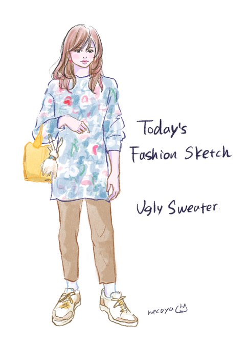 今日はいつもの #iPad pro+ #procreate でダサい❤️花柄のセーターのファッションをイラストに描いてみました。(ダサいって言ってるけど、すごく可愛くて気に入ってます🥰)