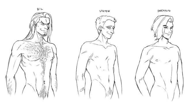 im,, still uncomfortable in drawing naked torso (im not used to it) but i gotta study so heres my studies attempts by using my male (he/him) #OC s😭 >->o