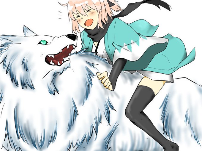 沖田さんとワンワン。この二人をパーティーから外すことってほとんどないから、仲良くなってくれてたらいいな~っていう弊カルデア妄想。