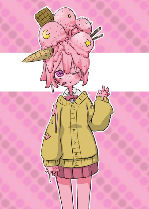#スライム娘版深夜の真剣お絵描き60分一本勝負 お題「アイスクリーム」でストロベリーアイス