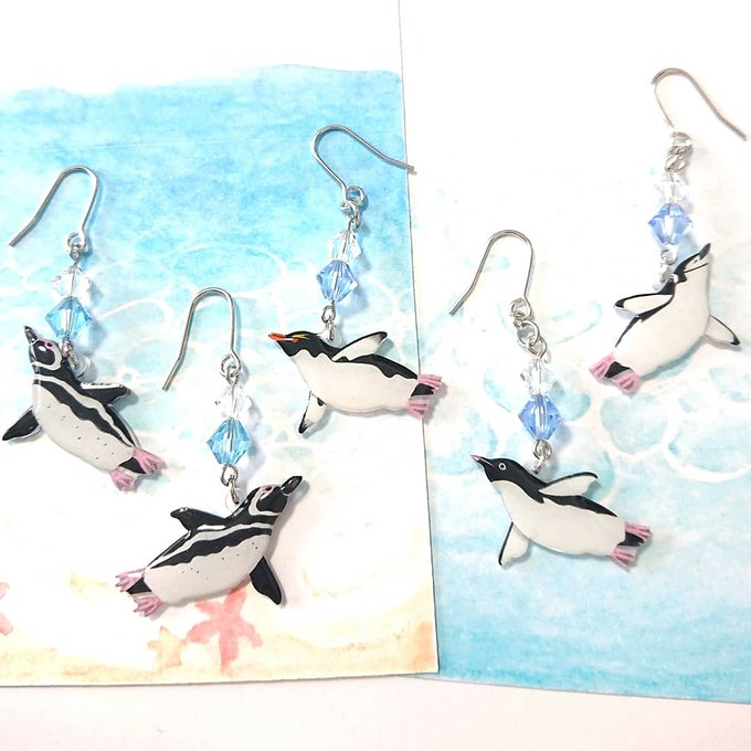 『ペンぎょ展』in浅草 本日より開催です! 親子ブローチはキングペンギンのヒナの存在感半端ないです。 ピアスやチャームはすいすい泳いでる姿! 氷のようなスワロフスキー付き 会場は感染対策をしっかりしていますので是非いらしてください!! #ペンぎょ展 #ペンギン