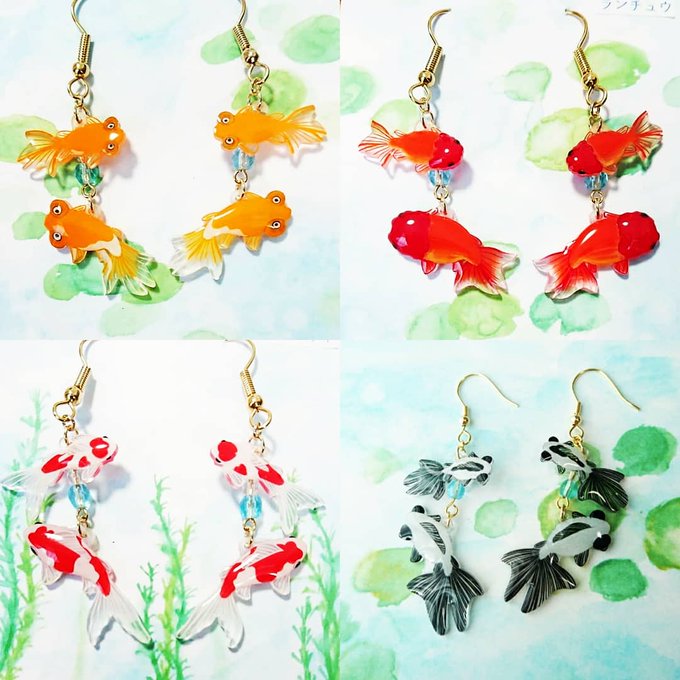 明日から福岡のcafe&galleryフッフールさんで開催する 作品展示即売会「アミュレット」に出展します! https://t.co/kVxs0YdsNI #フッフール #アミュレット #ハンドメイドアクセサリー #手描き #金魚 #錦鯉 #クラゲ #ピアス #ブローチ #帯留め