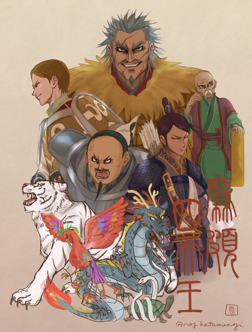#2021年自分が選ぶ今年上半期の4枚 ①廉家初登場日お祝い絵②山陽(将軍として背負ってるものを描きたかった)③週ドロさん「虎視眈々」④出先で休息取ってるやつ