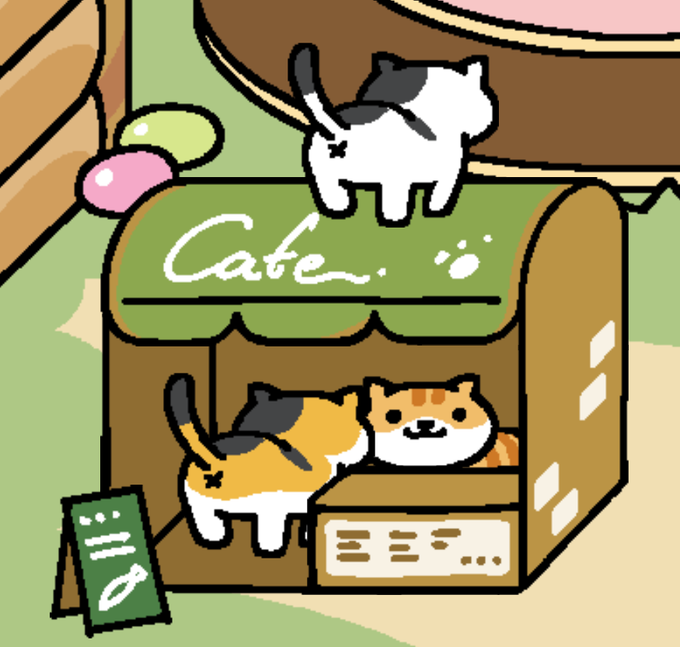 屋根にのるあさぎりさんと店番のしんくんとしんくんにホッペくっつけるまもるくんです