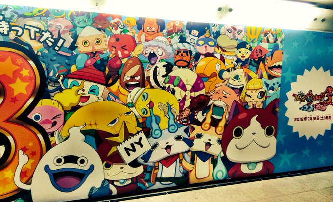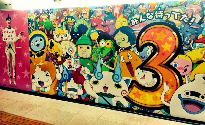 新宿駅の妖怪ウォッチ3の巨大広告見てきました。朝からテンション上げて出勤!