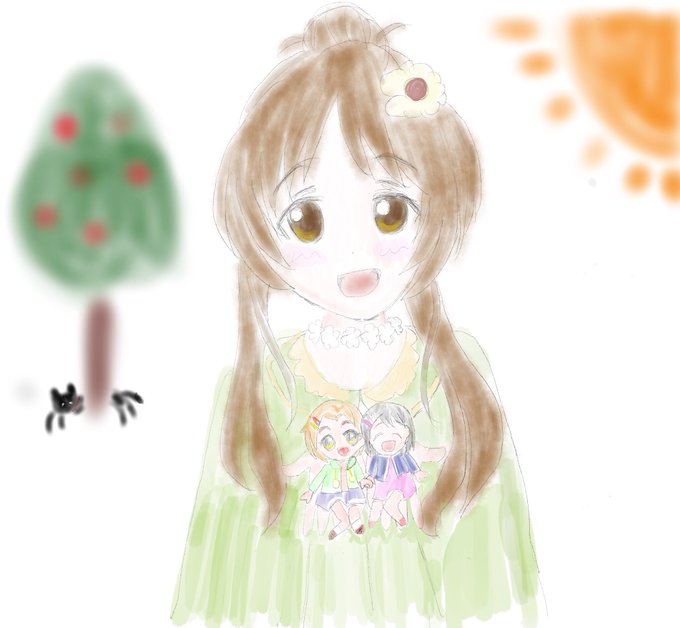 (藍子ちゃんとお散歩カメラしてたら小さな薫ちゃんと千枝ちゃんを見つけたから手のひらにちょこんと乗せて「パシャり♪」)#imas_cg