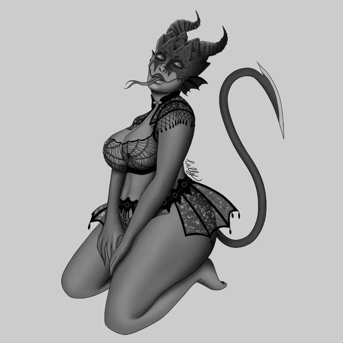 Mano, eu amei fazer esse desenho, por mais que eu não saiba que tipo de criatura ela seja, acho que um dragão+demônio, enfim, não sei, só sei que é gostosa!