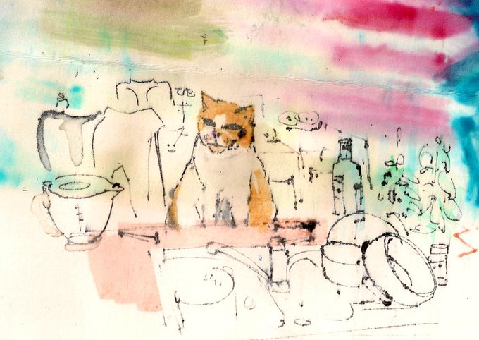 #printoctober Polychromatic printing. I drew Wilfy on an open screen with water soluble pens & printed with Manutex