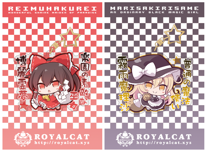 お知らせ遅くなりましたが3月25日開催の東方合同祭事に参加します🌸配置は霊20 ROYALCATです。新作は霊夢と魔理沙のアクリルキーホルダーです。よかったら遊びに来てください><*