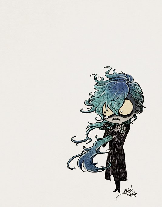 小さい絵はこう描いてます。当たりはつけてもつけなくても一緒だからあまり描かないんですが、今回はカッコつけるためにあたりつけて描きました。いつもはもっと適当です。大体30分くらい。