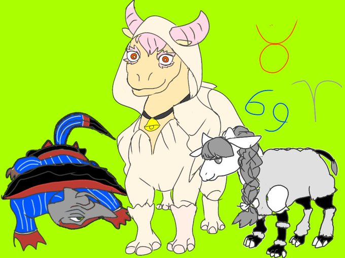 ルックさん誕生日おめでとうてことで 古生物戦犯 フレンド・シープ×ヒラコテリウム ルック・ミー×インドコテリウム サー・カンサー×プセフォデルマ (…とはいっても全然原型をとどめていないの図)