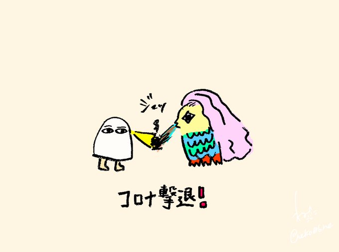 早くコロナ いなくなってくれないかなー #イラスト #アマビエ 様 #メジェド 様