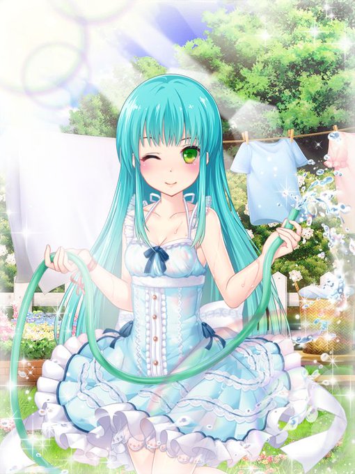 久々に中間忘れてた(汗) 同じホースで水まいてる衣装で雰囲気だけ味わっときます。 #ニジカノ