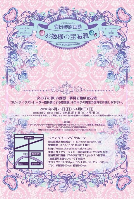 明日より猫扮装個展 #お姫様の宝石箱 が開幕いたします🌸明日は午前中に設置しますので午後からご覧いただけます。