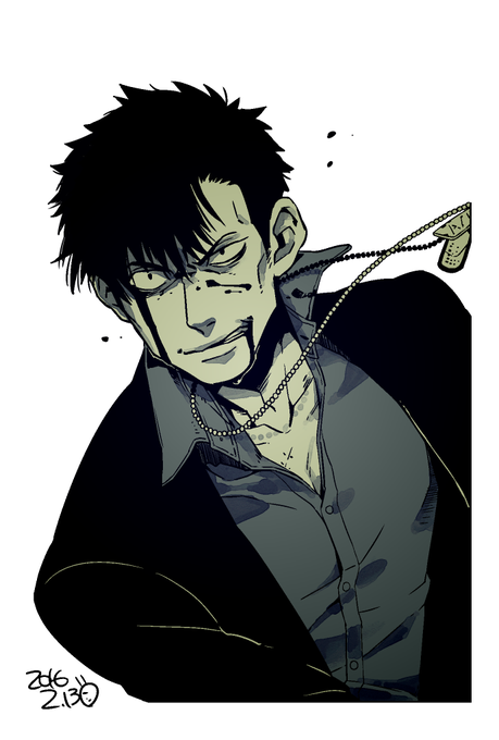 【らくがき】GANGSTA.:ニコラス モノクロ二値でざくざく。原稿の合間の癒しにらくがき。そろそろドッグタグ描くために粒々ブラシを作製しようと思います。指が死にそうです。