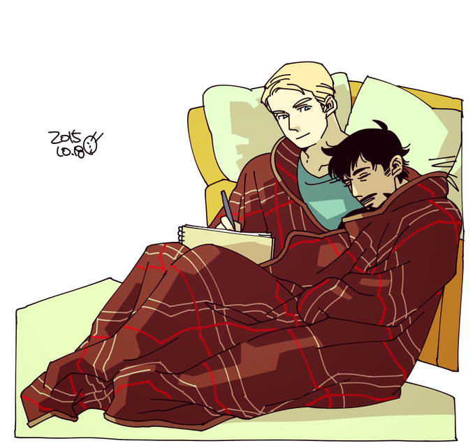 【らくがき】アベ:キャプトニ RTの例の着る毛布を使わせてみたんですけどもどうでしょうか。しあわせ?