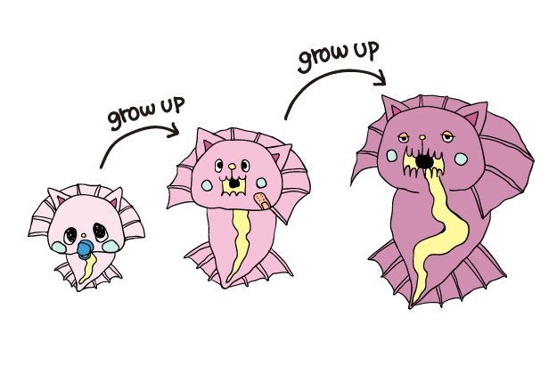 ユメニャマコは子供の頃ピンク色。 大人になると、大人の雰囲気かもしだすワインレッドに変わっていきます。