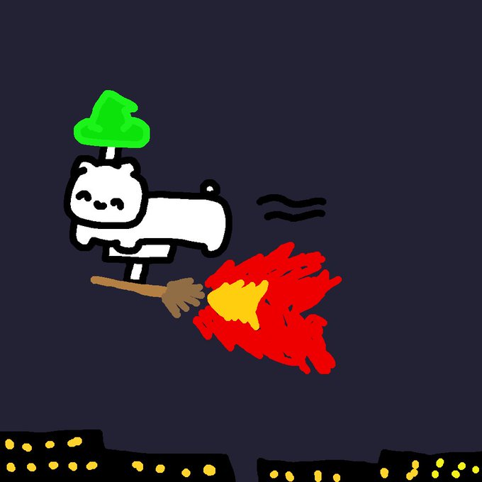 箒で空を飛ぶネコチャン #まいにちネコチャン