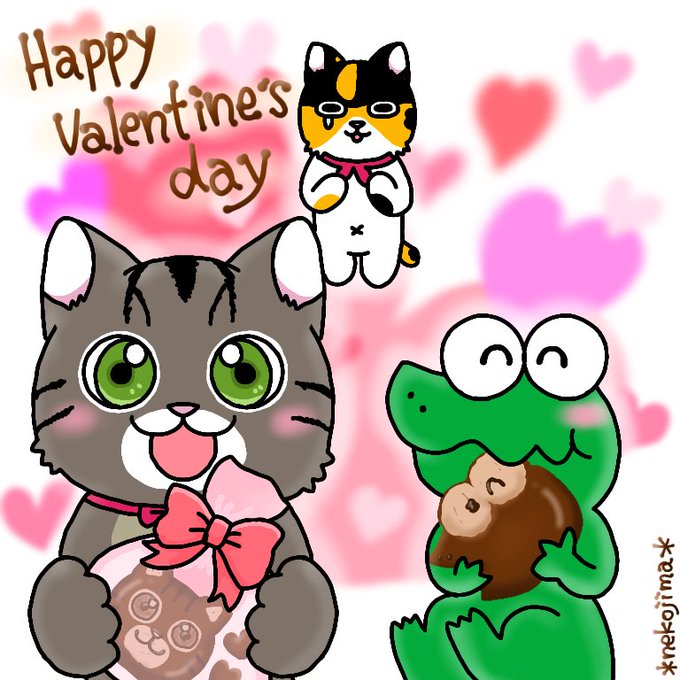 🐱🐸「みてみて~!ヒカちゃんからこんなにかわいいチョコもらったよ~!!」