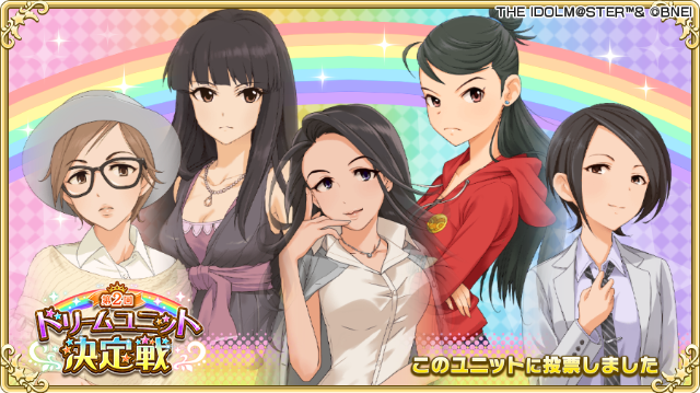 @oyupuyo はじめまして。まだ大丈夫でしたら画像の5人「レッドバラード」にお願いします。 最初期からあるユニットで唯一誰にもボイスが無く、今回は報われてほしいのです……😢