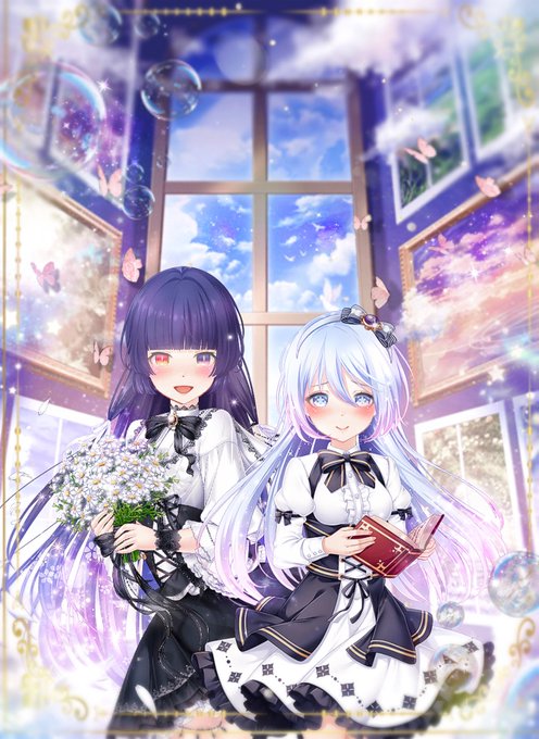 ここさん(@cocco_kano)宅のフィーアちゃんお借りしてうちの子と遊んでいただきました💜💙