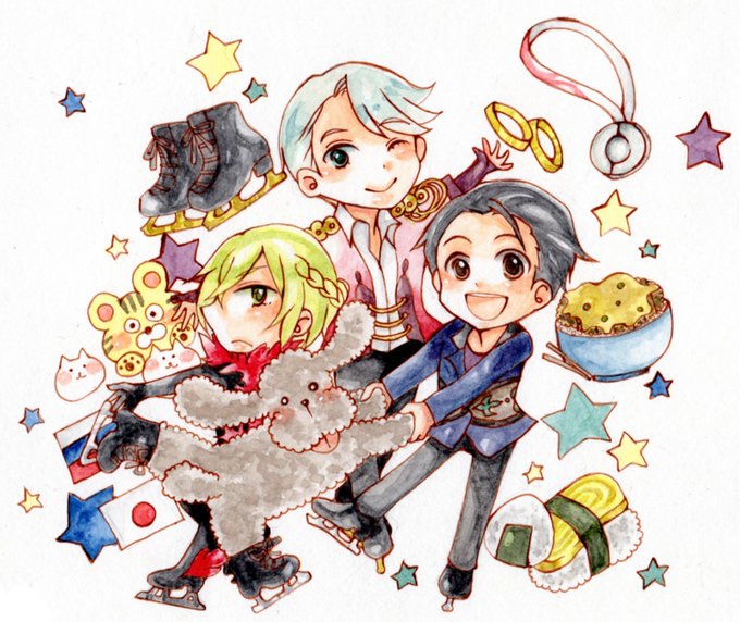 過去絵で失礼します💦(一枚目は始めて描いたユリオ☺)