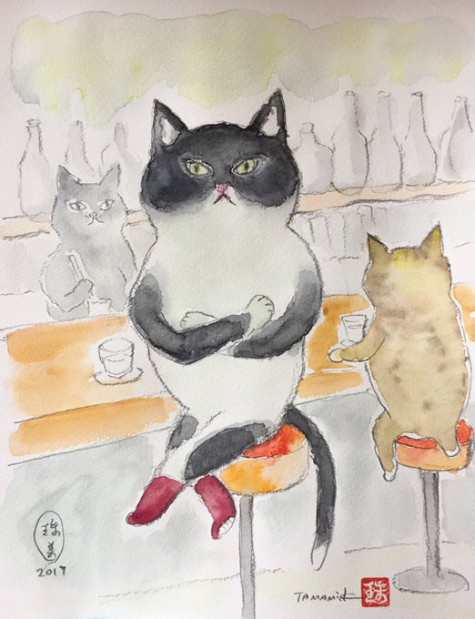 にゃんぱく〜ねこの万博@nekonobanpaku オリジナルグッズとして2種のテーシャツのデザインもやらせて頂きました!ねこさん前面いっぱいフルカラーテーシャツ&シルクスクリーン1色でシンプルなねこさん行進テーシャツ♪ どちらのデザインがお好き?