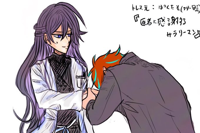 フリー写真素材眺めてたら医者に感謝するサラリーマンってのが出てきて💉と👔でやるしかないと思った