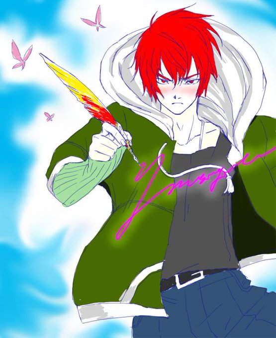 @Nixe_U 似せフレドお待たせンゴ!なんかもう個性ってなんなんだろうね…訳がわからないよ。そしてフルデジタルで頑張ったよ…ペンタブ久々すぎて発狂しかけたのでアルフレドの頬を染めました。ごめんなさい(´・ω・`)