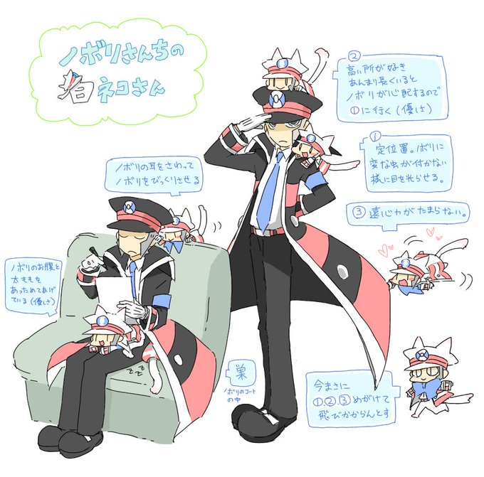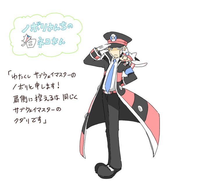 前にかいた黒ネコさんの、白ネコさんバージョン。好き勝手してるように見えて、意外と献身的にノボリを支えている。