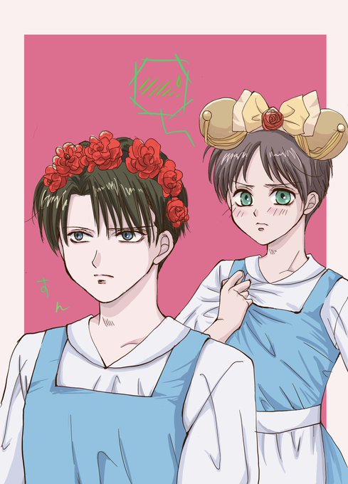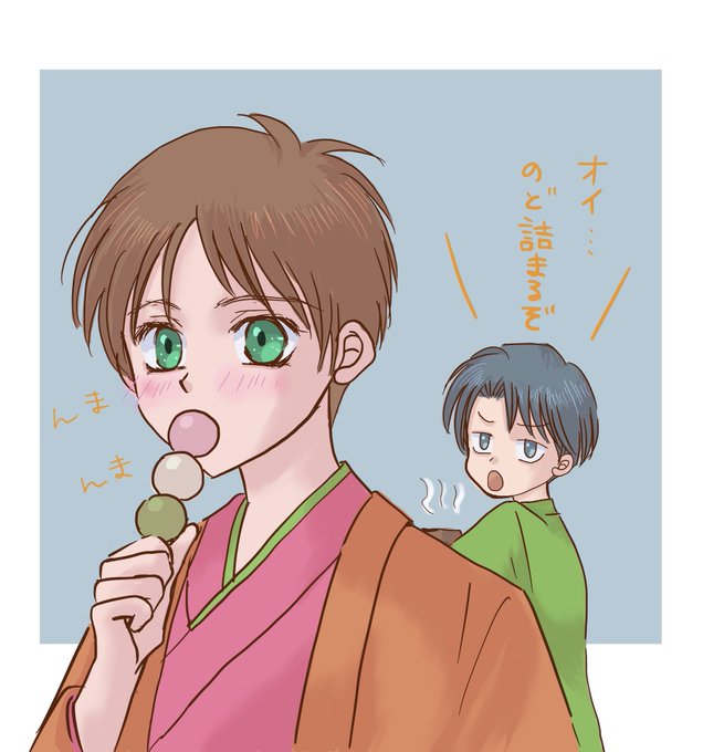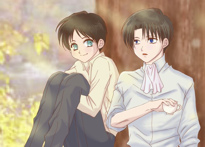 某王国にて(いつもの引率ネタです)エレンちゃんのお土産の量におのぼりが過ぎると驚きつつも、中身が自分と食べる様のクッキーや紅茶が8割と知って悪くないと思うリヴァイさんです←説明しないと分からない程の画力😂