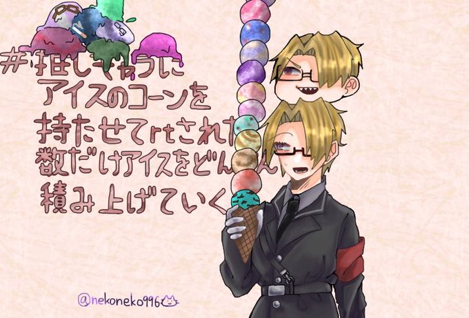 #推しキャラにアイスのコーンを持たせてrtされた数だけアイスをどんどん積み上げていく たくさんの♡とRTありがとうございました!