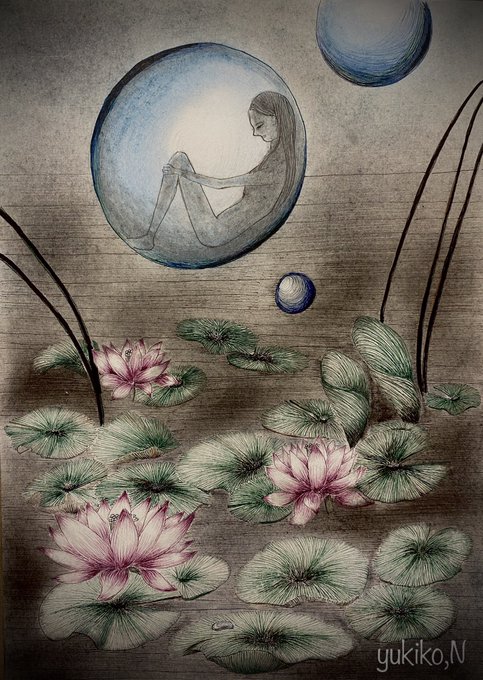 #art #illustration #penart #イラスト #アナログ絵 #ペン画 #パステル #アナログ絵描きさんと繋がりたい #絵描きさんと繋がりたい #睡蓮 #7月