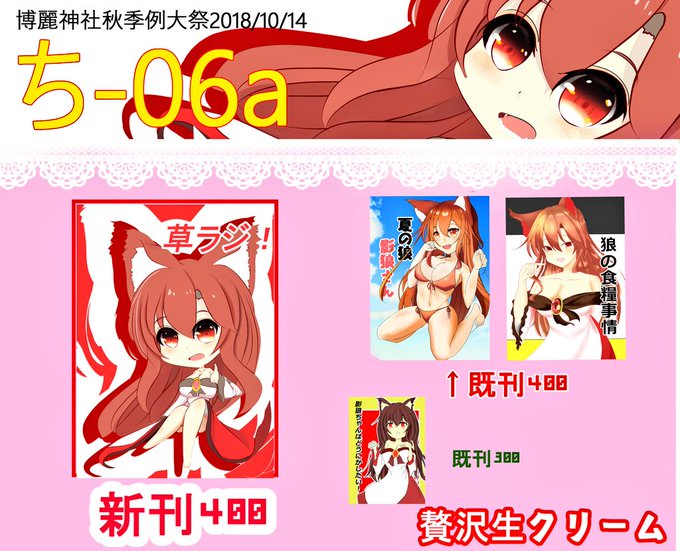 明日ビックサイトにて行われる 博麗神社秋季例大祭の 【贅沢生クリーム】お品書きです! 新刊は草の根の三人がラジオをする話です! 夏コミの時の本持っていきます。 スペース【ち-06a】でお待ちしております!