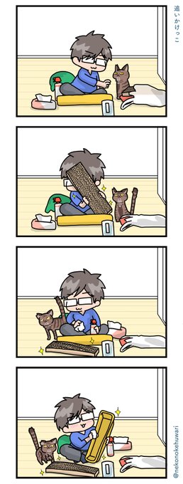 爪研ぎ複数置いてても新しいのに飛びついてくる🤣#猫 #漫画 #猫好きさんと繋がりたい #イラスト好きさんと繋がりたい