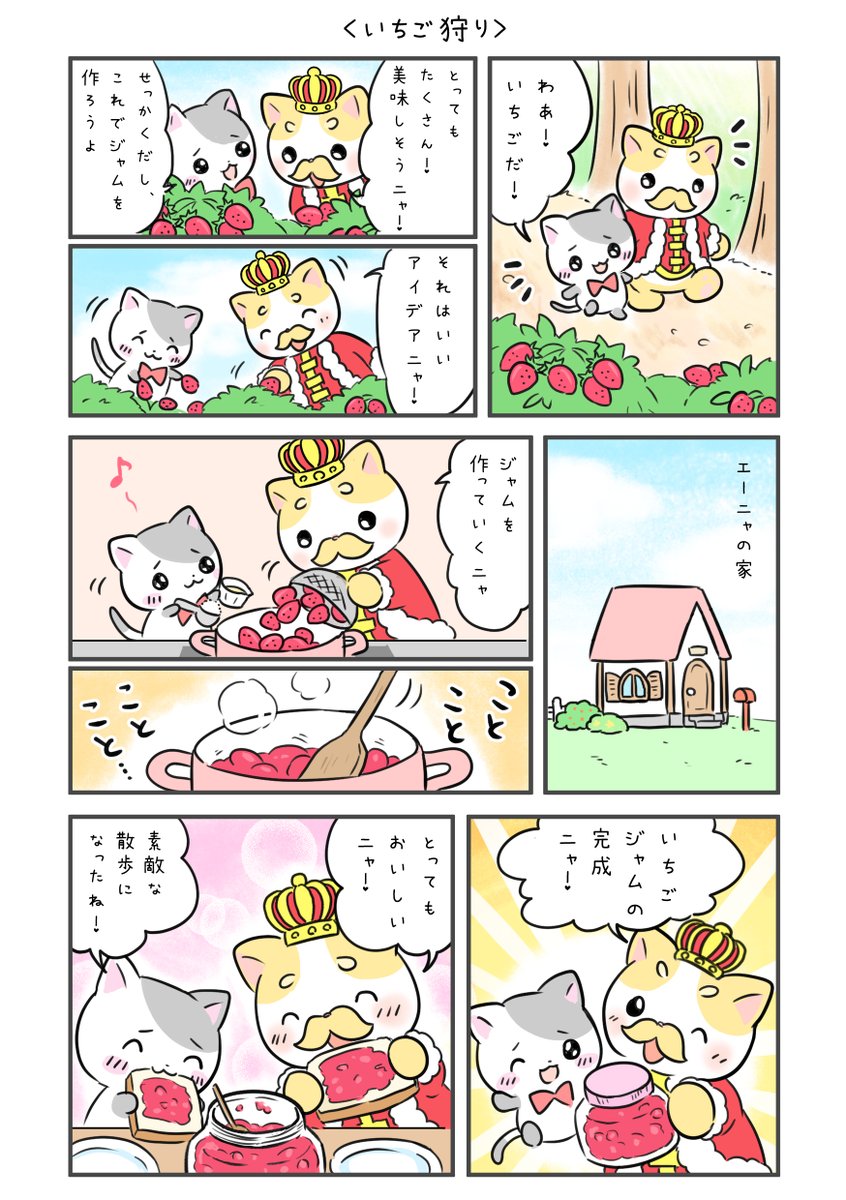 たくさんイチゴをとって、苺ジャムを作ったニャ!