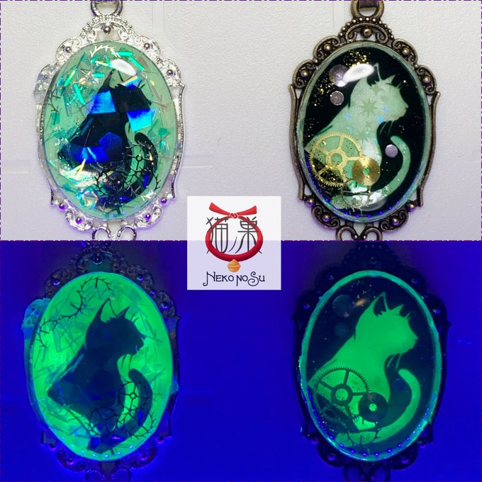 以前ご紹介した透過アクセ大のラフ画『チェシャねこ』に色が付きました。色と柄違いで6種類予定です。