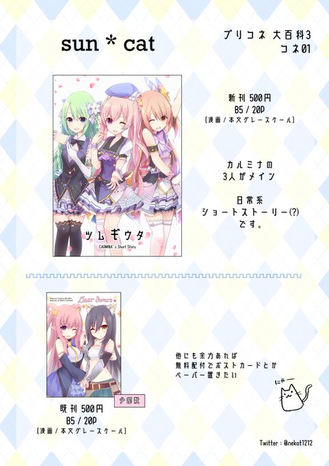 5/19(日)開催のプリコネ 大百科3 スペース「コネ01」で参加いたします。 おしながきと新刊サンプルです。 当日はどうぞよろしくお願いします。 新刊出る予定ですが、 まだ入稿してないですやばい! がんばります…! #プリコネ大百科3