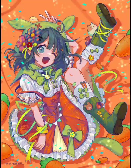 #第十七回塗りマス #第十七回塗りマスタイムラプス 可愛らしい線画塗るの楽しかったです! あまり何も決めずに塗ったので途中に迷走入ってます💦