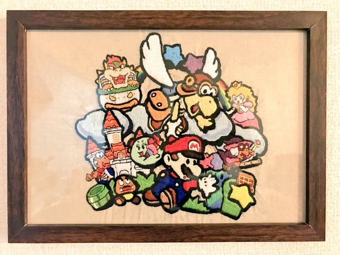 ついに完成!! シワがよってしまったのが悔やまれるが可愛くできて満足( ´﹀` ) #刺繍 #マリオストーリー #ハンドメイド
