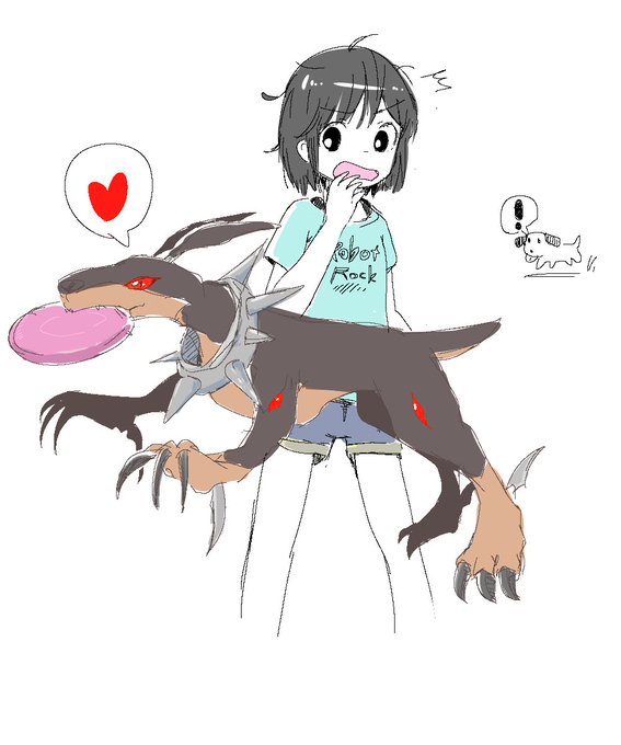 人様のワンちゃんのフリスビーを本能的に奪ってしまったドーベルモンとテイマーのハルちゃん(オリキャラ)