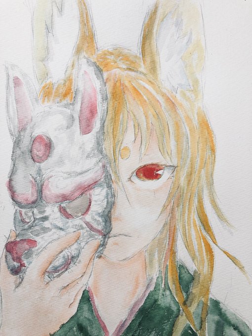 #狐娘 #狐耳 #水彩 #1日1絵 #イラスト #イラスト好きな人と繋がりたい #絵描きさんと繋がりたい #芸術同盟
