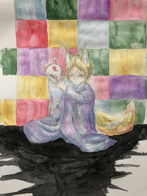 おはよーございます!今日の一枚はこちら。昨日のに色を塗りました! #創作 #狐娘 #狐耳 #イラスト #イラスト好きさんと繋がりたい #水彩 #ガラスペン #1日1絵 創拡