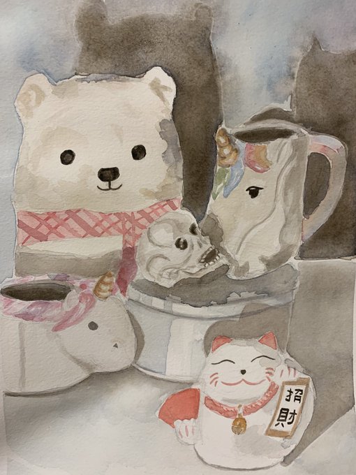 #art #artsy #watercolor #watercolors #watercolordrawing #watercolorpainting #watercolordaily #artist #homework #cute #bear #unicorn #mugs #cat #kitty #ceramic #white