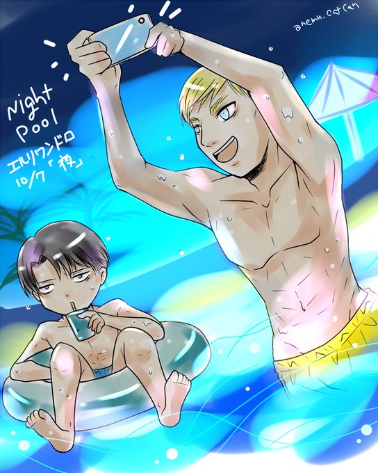お題『夜』 夜のプールではしゃぐ二人 遅刻参加 10/6 23:10~24:13 #エルリ版深夜の真剣お絵描き60分一本勝負