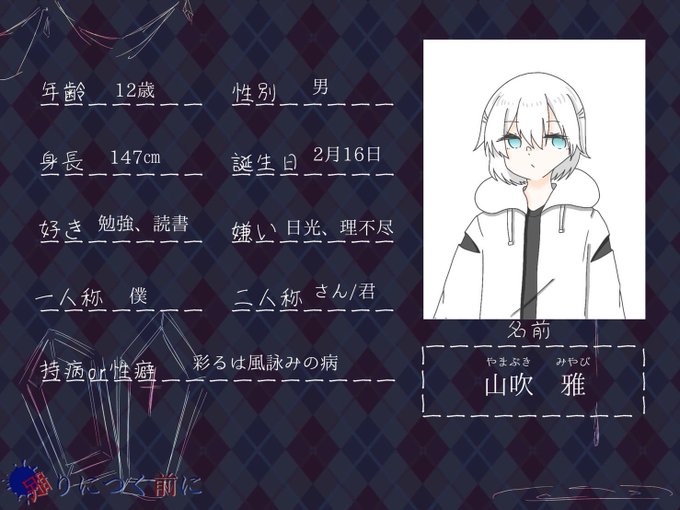 『どうも…山吹雅です』 彩るは風詠みの病 山吹 雅(@ Enok1take ) #眠前_CS