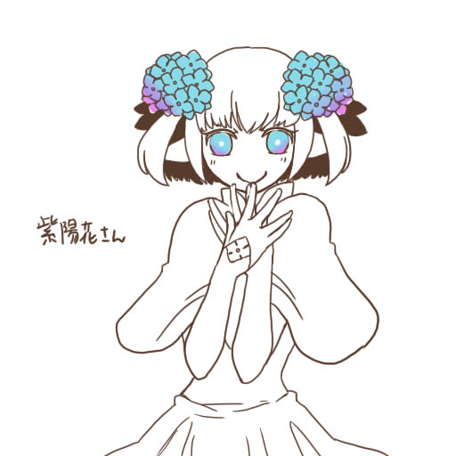 紫陽花さん(@yume_azisai):蒙の魔王。頭に大きな花が咲いている植物系の魔王。花と瞳の色は感情や場の空気に反応し、穏やかな空気であれば青色、緊張や危険な空気であれば赤色に変化する特徴がある