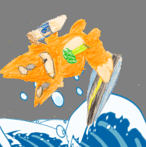 そして息子のイラストを本当にサーフィンエモートにしてくれました! @cocorinn007 @H2CO123 ありがとうございました!